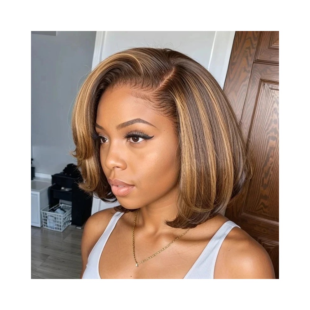 Produkteigenschaften: Diese 13x4-Spitzenfrontperücke aus 100 % brasilianischem Echthaar bietet eine natürliche und vielseitige Lösung für Beauty-Einzelhändler. Ihre transparente Schweizer Spitzenbasis sorgt für eine nahtlose Anpassung an alle Hauttöne, während die hitzebeständigen Fasern Flexibilität beim Styling bieten. Dieses 6-Zoll-Pixie-Bob-Design eignet sich für amerikanische, europäische und schwarze Frauen und lässt sich in allen Farben färben. Mit einer Mindestbestellmenge von nur 1 Stück, einer schnellen Musterlieferung innerhalb von 1-3 Tagen und anpassbaren Verpackungsoptionen ist sie ideal für Unternehmen, die eine risikoarme Beschaffung und einen schnellen Lagerumschlag anstreben.